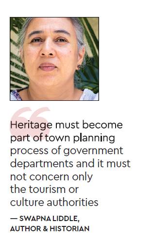 However, heritage is not just about taking pride in developing city parks or inherent culture but is a simple way of life. “Heritage must become part of town planning process of every department (municipal bodies and urban development), and it must not concern only the tourism or culture authorities. Unfortunately, with the city’s fast developing pace, the old construction is losing its inherent charm and the havelis are being replaced by solid blocks of multi-storeyed commercial complexes. It is a net decrease in the quality of life due to degraded construction. A number of historic sites, where pieces of political, military, cultural or social history have been preserved, help in improving areas not only for tourists but also for better life of city people,” feels Liddle.