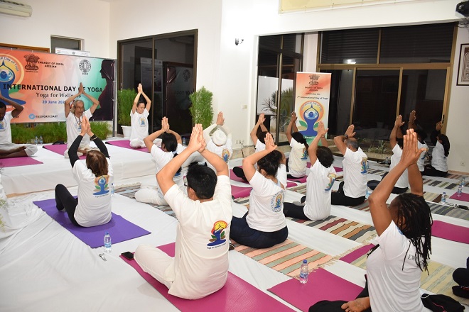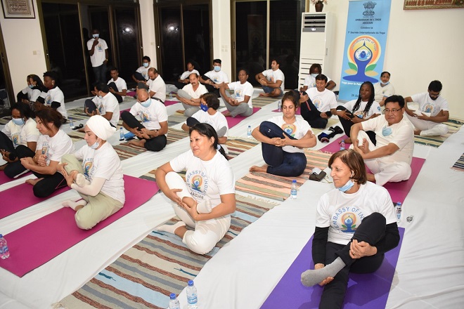 “Yog Guru Phillippe Torella, a Yoga instructor at the ‘Art of Living’, Abidjan led the Yoga session for all the participants which encompassed Yoga asanas. He also demonstrated a few difficult asanas and explained the benefits of the same,” said the Indian envoy.