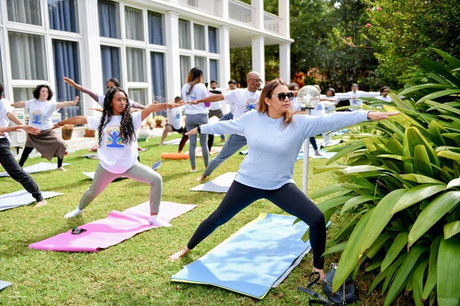 In his address, the Indian envoy highlighted the relevance of the International Day of Yoga and role of Yoga in living a healthy life. This was followed by an hour long Yoga session conducted by Ms Yvonne Radjibaly from Heartfulness Yoga and Meditation.