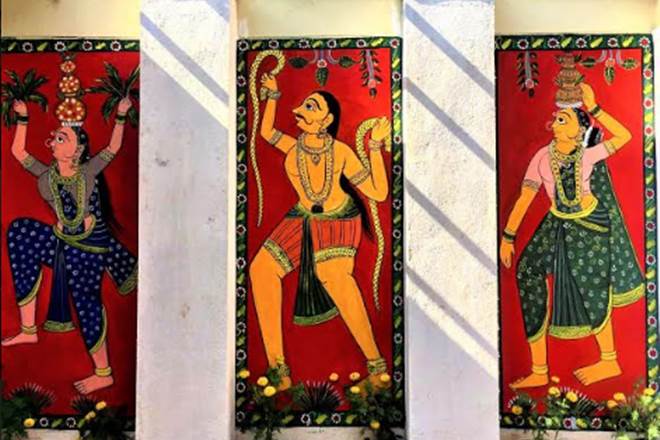 In modern times movies and televisions are popular modes of mass entertainment. In ancient and medieval era scroll paintings were the popular modes of entertainment for the common man, which combined both visual and audio media. Bards or story tellers would carry these painted scrolls as they moved from village to village, and used them as colourful visual props as they wove stories and sang age-old folklore songs for their village audiences. Today this ancient art of storytelling using scrolls is almost lost, and is seen only in remote villages or in government sponsored cultural events. Scroll painting was once popular across India of which the more famous ones include patachitras of West Bengal and Odisha, phad paintings of Rajasthan, and Warli paintings of Maharashtra. Among the lesser known scroll paintings is the Cheriyal painting of Telangana, which will be the subject of discussion in this article.