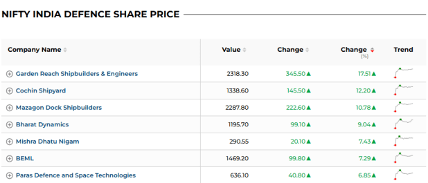 Close behind, Cochin Shipyard gained around 12%, while Mazagon Dock Shipbuilders rose nearly 10%.