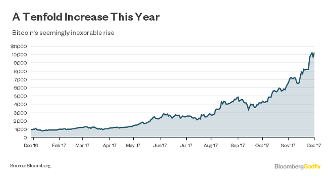 And then there’s the bubbliest market of them all: Bitcoin. The price of the virtual currency recently crossed $10,000 for the first time. Despite that move, the number of times the term “bubble” has appeared in news articles is still below previous peaks. Still feeling comfortable about 2018?