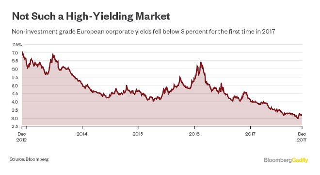 Sales of new corporate debt denominated in euros are also setting records this year. Spreads on non-investment grade European debt briefly dipped below U.S. 10-year Treasury yields in August. As investors clamor to buy the bonds, their yields are making the moniker “high yield” increasingly unsuitable.