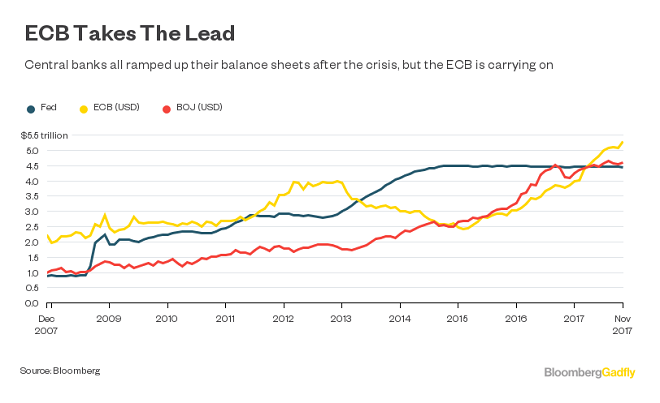 Pockets of the bond market also look troublesomely bubble-like. Two-year euro zone government bonds have raced below zero this year: most governments can borrow at an even lower cost than the European Central Bank’s deposit rate. Yields are being driven lower as the ECB continues to expand its balance sheet by buying bonds. In the U.S. Treasury market, the flattening of the yield curve is worrying some bond investors, including billionaire fund manager Bill Gross.