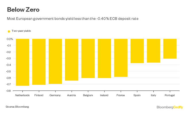 With government paper offering such meager returns, money has been flowing into corporate bonds. European investment-grade bond funds have taken in cash for 45 consecutive weeks, according to analysts at Bank of America Merrill Lynch. Inflows are poised to set a record for the year.
