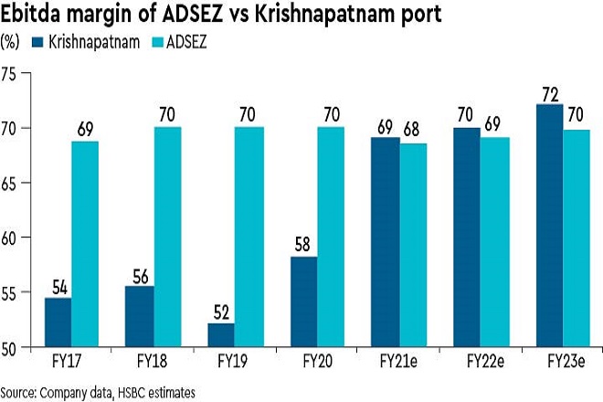 Set to emerge stronger post COVID-19: ADSEZ said that KPCL will help to expand its footprint to over 80% of India’s hinterland (from 60-70% earlier) and achieve more parity on the east and west coasts. ADSEZ’s market share would also rise to about 25% (from 21%). ADSEZ said despite a fall in KPCL’s volumes in H1FY21 due to lockdowns, it raised the ASP and Ebitda margin due to operational improvements.