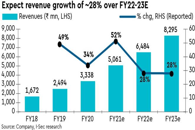 While the current near zero interest rates may translate into lower COE and elevated multiples for some time, their sustainability over the long term is to be seen, especially in the context of global ad tech giants (Facebook and Alphabet) themselves trading at relatively lower multiples (20x-26x, 1-year forward P/E basis). In the likely event of some of the above risks playing out, multiples may correct sooner. We expect 28%/25% revenue/earnings CAGR over FY21-23e. Initiate coverage with Hold rating.