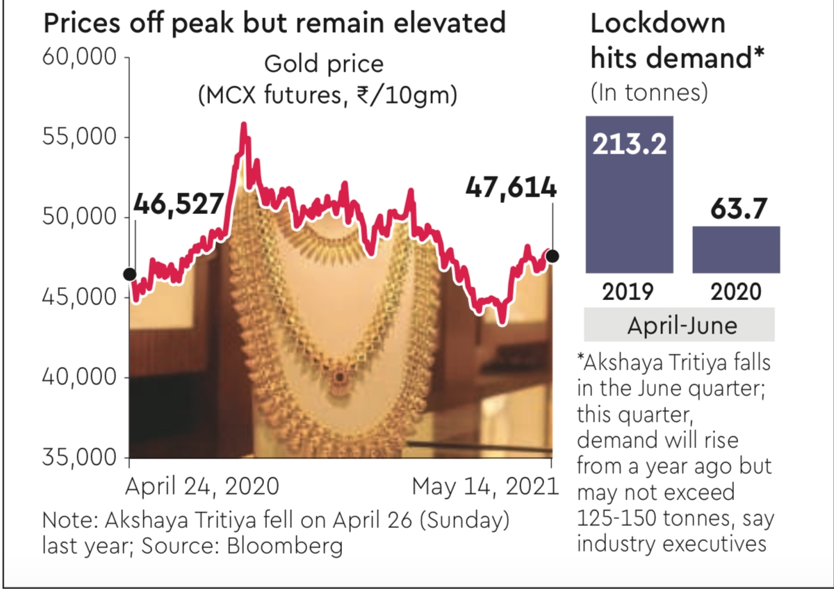 Gold sales dropped considerably on the auspicious Akshaya Tritiya on Friday, thanks to Covid-induced lockdown and other curbs, and elevated prices.