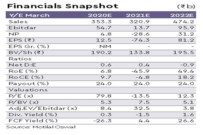 Apart from the above stated challenges, vulnerabilities to the company’s profitability could be higher led by high sensitivity to (a) ticket yield, (b) PLF, and (c) crude price assumption; note that material change to any of these will impact our estimates. The stock has already corrected ~35% in the last 45 days; however, we believe that stability in operations would be lagged until 3QFY21.