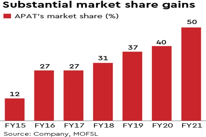 APL Apollo Tubes (APAT) is the largest manufacturer of Structural Steel Tubes in India. APAT’s diversified product portfolio and pan-India presence helps in mitigating concentration risk. Higher sweating of assets (capacity utilisation at 63%) will lead to kicking-in of operating leverage and better profitability. Robust distribution network, along with warehouses, higher retail network, and SKUs are expected to improve last-mile connectivity. Steady capacity addition, increase in penetration, and gains from unorganised players are expected to improve market share from current levels (~50%).