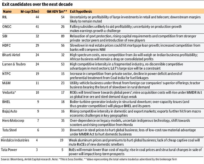 “The old contract between business and politics seems set for a major overhaul over the next decade… For those who believe that giant market-leading firms are highly unlikely to be kicked out of the Sensex, we highlight Century Textiles, GSFC, Bombay Dyeing, GE Shipping and Ballarpur Industries that were in the Sensex in 1992. The disruption created by the end of the ‘License Raj’ was such that all of these firms were out of the Sensex by 2002,” the report noted.