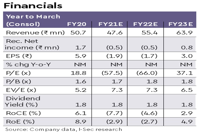 EPC revenues flat y-o-y, to ramp up going ahead: Ebitda margins declined 188bps y-o-y to 10.8%. Mgmt highlighted labour availability has normalised and it expects flattish y-o-y EPC revenue in FY21E. Ebitda margin guidance over the next two-three years has been revised to 11-12% from 12-13% earlier. Standalone debt levels remain comfortable at Rs 3.5 bn (Rs 2.2 bn in Q2FY21). Execution is expected to ramp up from Q4FY21 with the Kandi project commencing execution along with two NHAI EPC projects in Bihar.