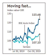 Analysts at Dolat Capital say, though the festival cheer has given some boost to the sector, it is still early to call this a recovery. “The H2FY20 is likely to be difficult, with inventory clean up likely to gain steam with emphasis on bringing down inventory and BS6 transition, which may weigh down volume growth and pricing power,” it said in an investor note.