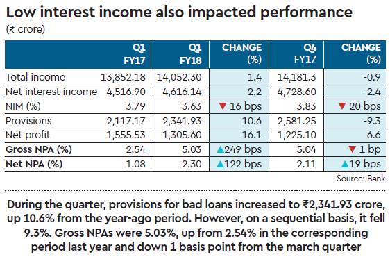 During the quarter, provisions for bad loans increased to Rs 2,341.93 crore, up 10.6% from the year-ago period. However, on a sequential basis, it fell 9.3%. The gross non-performing assets was 5.03%, up from 2.54% in the corresponding period last year and down 1 basis point from the march quarter. Net non-performing assets increased to 2.30% from 1.08% a year ago and 2.11% in the previous quarter. Net interest margin (NIM) fell to 3.63% from 3.79% in the year-ago period and 3.83% in the previous quarter. “There is a migration that continues to happen from base rate to MCLR, and as that continues to happen, you will see repricing of loans to existing customers at lower rate.