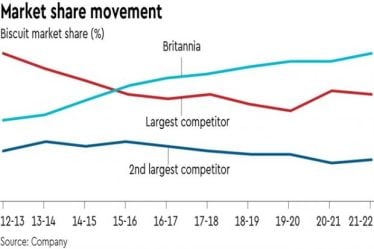 Evaluating partnerships in Dairy with QSRs and restaurants in FY23 will lead to good growth in adjacencies, apart from plans to incubate ‘fresh business’ through launch of paneer, Greek yogurt and smoothies under the ‘Come Alive’ brand. Britannia is striving to attain leadership position in wafers and croissants.