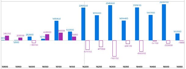 Nifty Put options OI distribution shows that 16,000 has highest OI concentration followed by 16,100 & 15,900 which may act as support for current expiry and on the Call front 16,500 followed by 16,400 & 16,300 witnessed significant OI concentration and may act as resistance for current expiry.