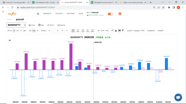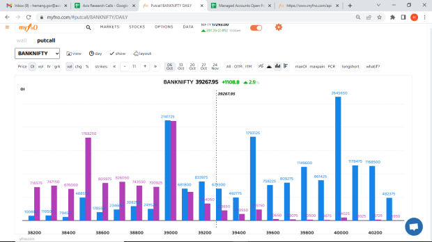 Bank Nifty Put options OI distribution shows that 38,000 has highest OI concentration followed by 38,500 & 38,700 which may act as support for current expiry and on the Call front 40,000 followed by 39,500 & 40,100 witnessed significant OI concentration and may act as resistance. Options data indicated an immediate trading range between 38,500 and 39,800 levels. On a weekly basis Significant Call writing in Bank Nifty was seen at 40,000, 40,100 & 39,500 strike while on put side it was seen at 39,000, 38,500 & 38,000.
