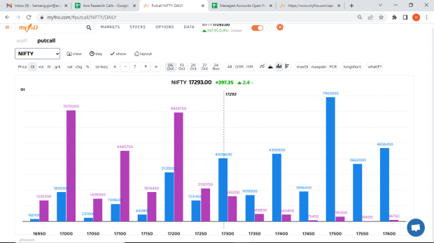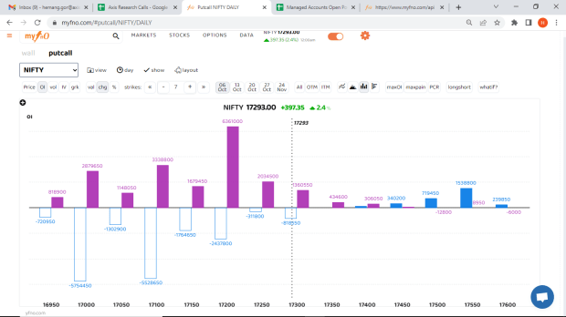 In Nifty current series there has been a Long Addition witnessed with increase in price of 2.73% and increase in OI by 2% as of Wednesday wherein there was addition of 1.58 lakh shares in OI, increasing from 114.50 lakh to 116.08 lakh shares. Nifty current month rollover stands at 10% as of Wednesday, while Nifty Put Call Ratio, a sentiment indicator used by traders to gauge the market sentiment and mood, is currently at 1.24 compared to 1.02 of last week, indicating a flat-to-position movement for expiry.