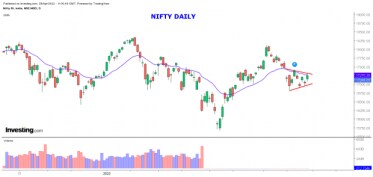In the last week and a half, our markets have shown some resilience in comparison with most of the global peers. This is an indication of the inherent strength and hence, the moment we see some relief globally, our markets would be the first one to take a leap. We continue to remain hopeful as long as 16900 – 16800 are defended successfully. Now with the last two weeks of range bound movement, the daily time frame chart exhibits a ‘Triangle’ pattern and prices are inching closer to its apex point. Hence, the breakout in either direction is imminent.