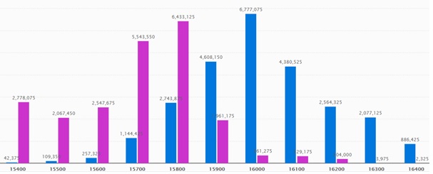Nifty Put options OI distribution shows that 15,800 has highest OI concentration followed by 15,700 which may act as support for current expiry and on the Call front 16,000 followed by 16,100 & 15,900 witnessed significant OI concentration and may act as resistance for current expiry.