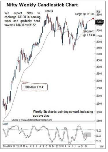 Structurally our constructive bias remains intact which makes us confident that index will resolve above 18100 mark and eventually head towards 18600 by December 2022. Thereby, temporary breather from hereon should be used as buying opportunity as we do not expect key support of 17300 to be breached. Our positive stance is based on the following observations:
