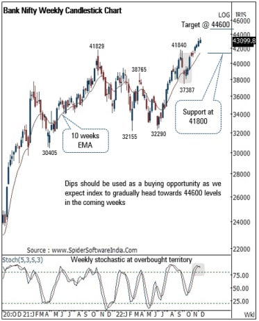 Structurally, in the Bank Nifty rallies are getting faster and stronger while corrections are shallow, underpinning inherent strength highlighting robust price structure. The Bank Nifty has support at 41800 mark being the confluence of the