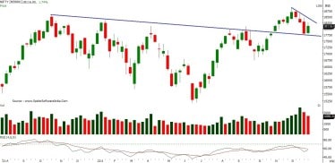 Nifty started the week on a flat note and witnesses a buying momentum for most part of the week that led the index to close on a positive note. Nifty closed at 18105 with a gain of 299 points on a weekly basis. On the weekly chart, the index has formed a bullish candle and remained restricted within previous week’s High-Low range indicating lack of strength on either side. The chart pattern suggests that if Nifty crosses and sustains above 18300 level it would witness buying which would lead the index towards 18500-18800 levels.