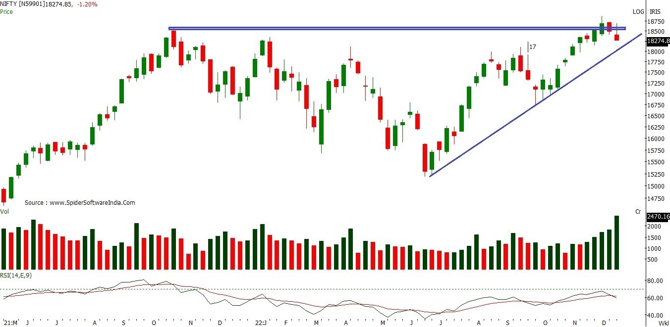 This week, traders can initiate a Moderately Bullish strategy with reduced premium outflow & lower breakeven point called BULL CALL SPREAD of 22 December Expiry wherein traders can buy one lot of 18,300 call strike at Rs 99 and simultaneously sell one lot of 18,550 call strike at Rs 25, so that net outflow or maximum loss will be restricted to up to Rs 3,700. Nifty on expiry if closes above the breakeven point of 18,374, the strategy will start making profits. The maximum gains will be restricted up to Rs 8,800; because the gains of long 18,300 strike call will be offset by the sold 18,550 strike call if Nifty closes above 18,550 on expiry.