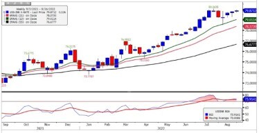 Indian rupee heads for the eighth monthly decline, the first time in the last two decades such kind of selling has been seen amid domestic and global worries. Central banks have unsuccessfully tried defending their currencies against the US Dollar by running down foreign currency holdings. The fight against depreciation has already drained their FX reserves. However, we are still the median performer among Asian peers mainly on the back of RBI intervention and better growth prospectus after the pandemic. For the current calendar year, India’s forex reserves fell from $633.61 billion to $564.05 billion, as per the latest weekly statistic published by RBI while the Indian rupee depreciated by 7% to 79.87, life low on the closing basis.