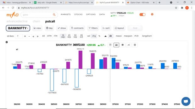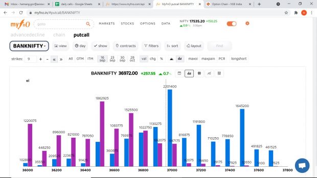Bank Nifty Put options OI distribution shows that 36,500 has highest OI concentration followed by 36,000 & 36,700 which may act as support for current expiry and on the Call front 37,000 followed by 37,500 & 38,000 witnessed significant OI concentration and may act as resistance.