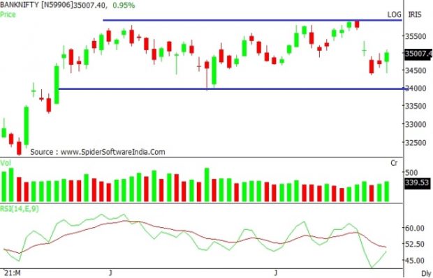 Bank Nifty started the week on a negative note and remained negative in initial half however Friday’s strong gains pulled index higher to end on flat note. Bank Nifty closed at 35034 with a loss of 716 points on a weekly basis.