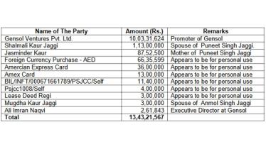 An analysis of the bank statements of Puneet Singh Jaggi revealed that a significant portion of the funds received from Wellray, amounting to approximately rs 13.55 crore, were primarily transferred to related parties, family members or used for personal expenses. Several transactions appeared to be for personal use, including foreign currency purchases worth Rs 66.36 lakh, payments to American Express cards totaling Rs 49 lakh and other self-related transfers totaling over Rs 18 lakh.