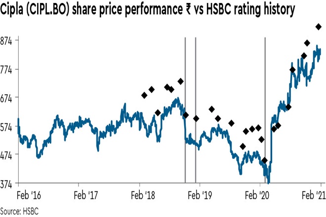 Raise target price to Rs 1,030 (from Rs 920): We lift our FY21-23e EPS estimates by 8-12% as we revise our sales assumptions and cost estimates per the current outlook (per Cipla, it is much ahead of its target of cost savings of Rs 4-5 bn for FY21). We value its base business by discounting the one-year forward fair value, which is based on 26x (Gordon growth-derived PE, earlier 25x) our Dec-2022e EPS of Rs 40.71 (earlier Rs 37.56). We add an NPV/share (unchanged) of Rs 25/7/25, respectively for the inhalers pipeline, tramadol IV and gRevlimid to the base business value to arrive at our fair value TP of Rs 1,030.
