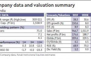 Rs 175 bn (+149% yoy). We view the performance of FY2019 as a reversion to normalised earnings, as the reported PAT for the preceding two years was impacted by non-recurring wage provisions, revision in employee cost, and a back-ended price increase (taken in January, 2018).