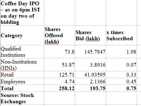 The initial public offering (IPO) of Coffee Day Enterprises gained traction on Thursday, with the issue clocking 75% subscription on the second day of the book building process. The IPO had recieved 13% subscription when it opened on Wednedsay.