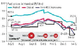 ATF, the fuel for aeroplanes, has been cheaper than auto fuels for most part of this fiscal; thanks to a 3-pps excise reduction in October and a 14% price cut effective January 1, the difference has now widened. Also, even non-PDS kerosene could soon become at par with ATF.