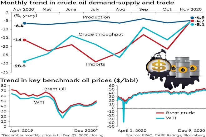However, the overall macros for crude oil improved during November’20, with throughput rising 13% on a m-o-m basis and the capacity utilisation of refineries reaching 100%.