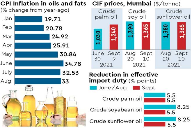 The retail inflation in oils and fats, which has a share of 7.76% in the consumer price index (CPI) entire food basket, increased 34.78% and 32.53% in June and July, respectively.