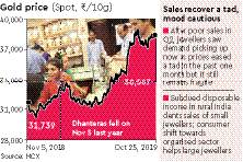 Tanya Rastogi of Lala Jugal Kishore Jewellers, who is also a director at Indian Bullion and Jewellers’ Association (IBJA), said: “Usually, 70% of our annual (calendar year) sales target is achieved in the first three quarters and 30% is met in the last quarter to which Dhanteras is a major contributor. This time, however, the entire year has been dull, so the last quarter is seeing the pent-up demand spilling over and partly making up for the subdued consumption earlier.” While disposable incomes of rural households have remained subdued, a shift in the consumer choice — from the unorganised to the organised sector — has also accelerated. These have dented the appeal of neighbourhood stores.