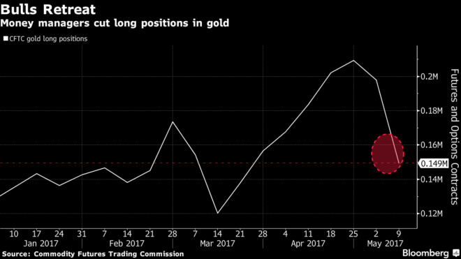Gold posted its first monthly loss this year in June as indications of stable economic growth cut demand for haven assets and investors looked past geopolitical concerns, including U.S. tensions with North Korea and conflict in the Middle East. At the same time, central banks are signaling higher borrowing costs, prompting hedge funds and other large speculators to reduce long positions in U.S. bullion futures and options to the lowest since May. The metal is still up almost 7 percent this year.