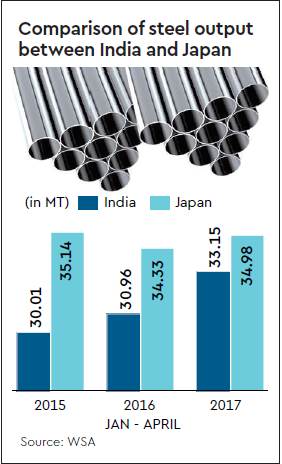 While India’s production is on the rise, Japan’s steel production has been on the wane to 105 MT last year from its peak of 111 MT in 2014.