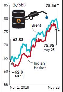 Oil prices extended losses for the third day as top producers Saudi Arabia and Russia signalled raising output to meet concerns about supply amid strong demand. The move comes at a time when record US crude production and a surprise gain in inventories pushed US West Texas Intermediate’s discount to Brent higher. Having erased close to 6% of the gains in the last three days, the benchmark Brent was trading at close to $75 a barrel on Monday after hitting a three-and-a-half-year high in May.