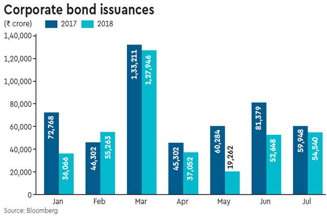 In the fortnight to July 20, non-food credit decreased 40 bps y-o-y, taking the outstanding loans to `85.62 lakh crore, Reserve Bank of India (RBI) data showed. A clutch of companies, including large players such as Tata Motors, Idea Cellular, Tata Steel, Ultratech Cement and Reliance Industries have announced plans to mop up money via non-convertible debentures (NCD). In June companies had sought shareholders’ nod to raise close to `60,000 crore through NCDs in 2018-19 on a private placement basis.