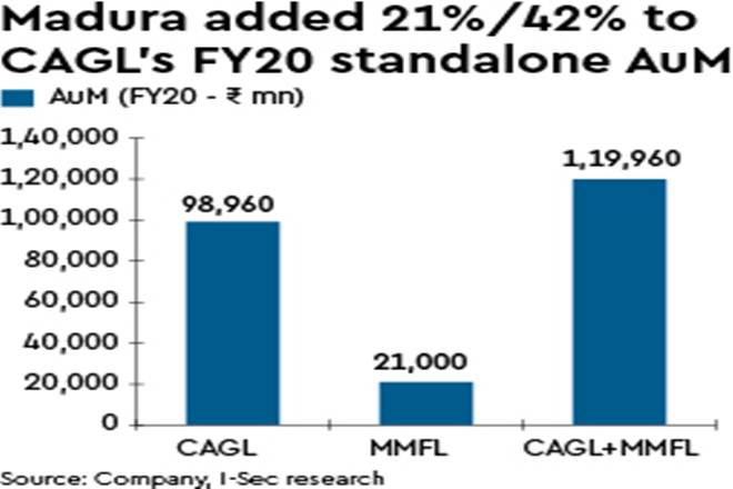 While CAGL continues to deliver industry-leading AUM growth at 38% y-o-y, driven by 17% y-o-y growth in customer acquisition, acquisition of Madura added ~21% to total AuM as of Mar’20. Significantly lower ticket size of Madura’s customer is likely to ensure revival of AuM growth quicker than peers. Standalone retail finance book now constitutes 5% of total AUM.