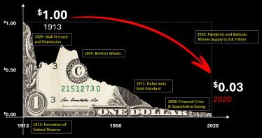 The chart above illustrates what has happened to the U.S. Dollar’s purchasing power over time—it’s steadily declined. The Indian Rupee tells an even harsher story. The Rupee, which traded at 25-30 Rupees range to the Dollar in 2000, fell to the 60s range by 2014 and hovers in the 80-90s range in this decade.