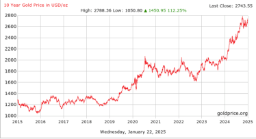 The chart below highlights the remarkable journey of gold prices in international markets over the past decade.