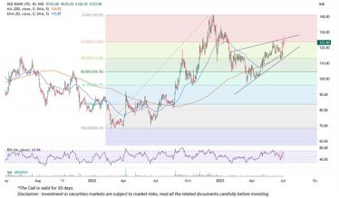 DCB Bank stock may offer mid-term investors up to 15% returns on the favourable prospects and upside potential, Prabhudas Lilladher said in a research note citing technical indicators. “DCB Bank stock exhibits promising upward potential on the Relative Strength Index (RSI), indicating favorable prospects and attractiveness of investing opportunity,” said the note. The brokerage report recommended investors to seize the opportunity and buy the DCB Bank shares at a target price of Rs 142, nearly 15% higher than the current market price of Rs 123.50.