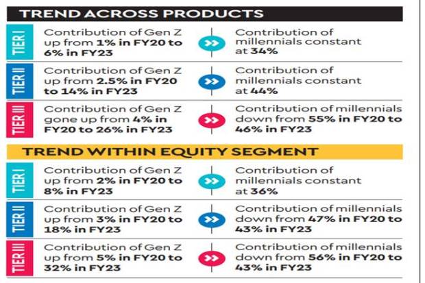 Customer data on icicidirect.com reveals equity remains the major investment product across cities for both millennials and Gen Z, followed by mutual funds.