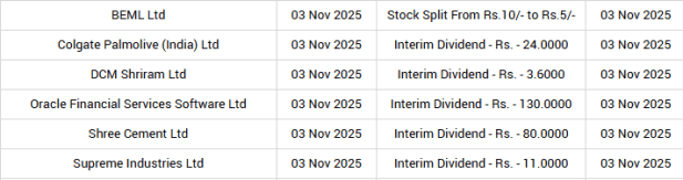 Dividend and corporate actions on November 3