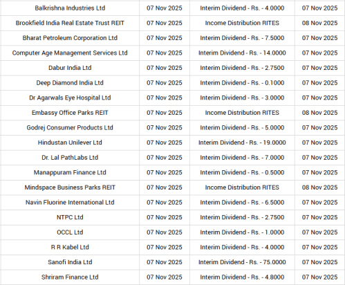 Dividend and corporate actions on November 7